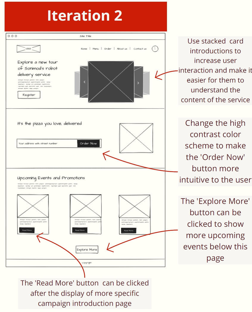 Our team embarked on creating a high-fidelity prototype for a robot pizza delivery system, aimed at revolutionizing the food delivery industry- “Sonimod” by maximizing efficiency, sustainability, and customer satisfaction. This project involved extensive user research, iterative design, and cross-platform development for mobile, tablet, and desktop interfaces